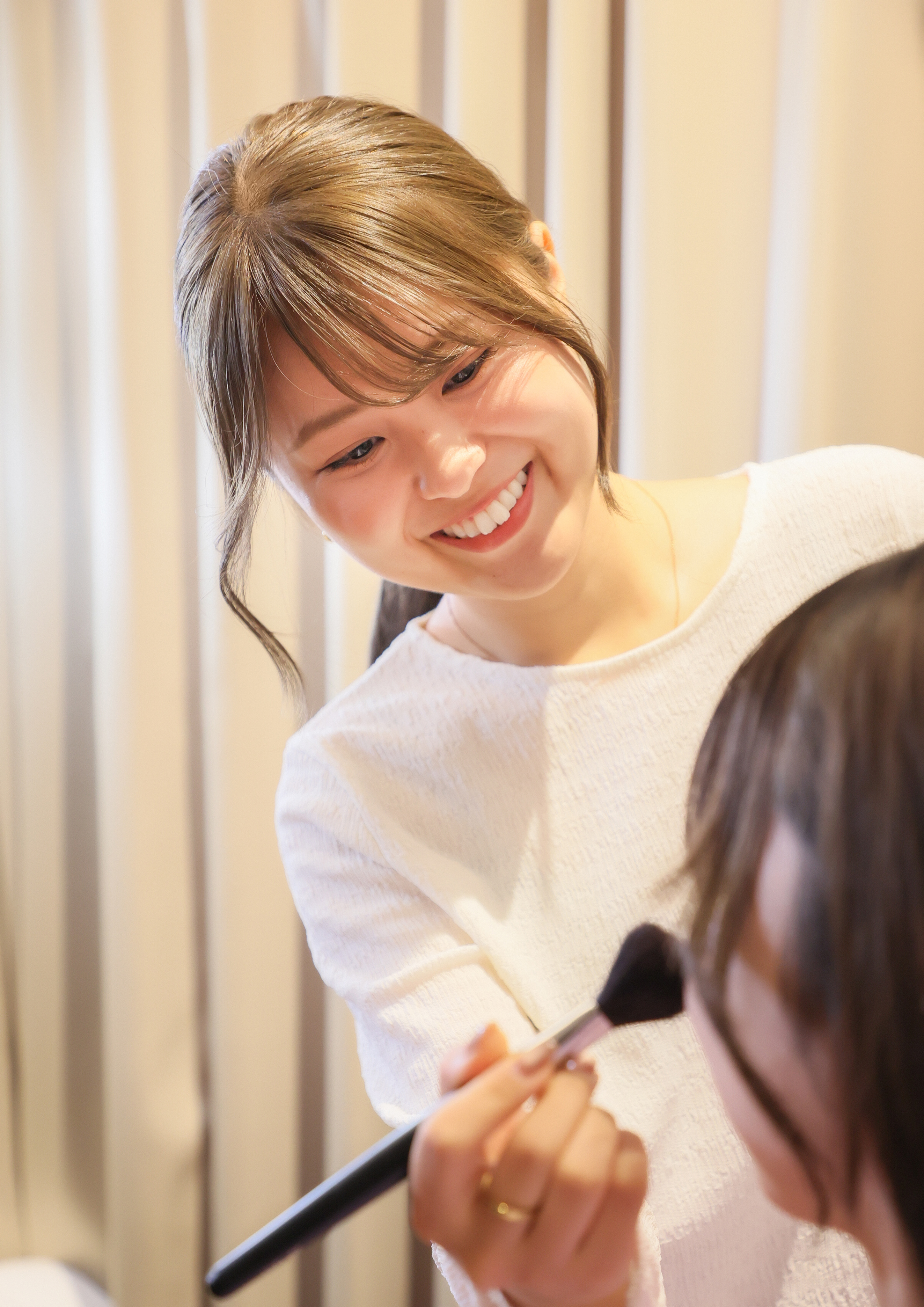 一番初めは専門学校の担任の先生から「この仕事向いてると思う!」とらかんスタジオをおすすめされたのがきっかけです。専門学校でヘアメイクや着付けを学んでいたためそれを活かせる仕事に就きたく、一生に一度の機会に誰かを笑顔に、そして幸せにできる写真撮影に興味を持ちました。また、子どもが好きだったこともあり、お子様と触れ合いながら働ける点にも魅力を感じ入社したいと思いました。