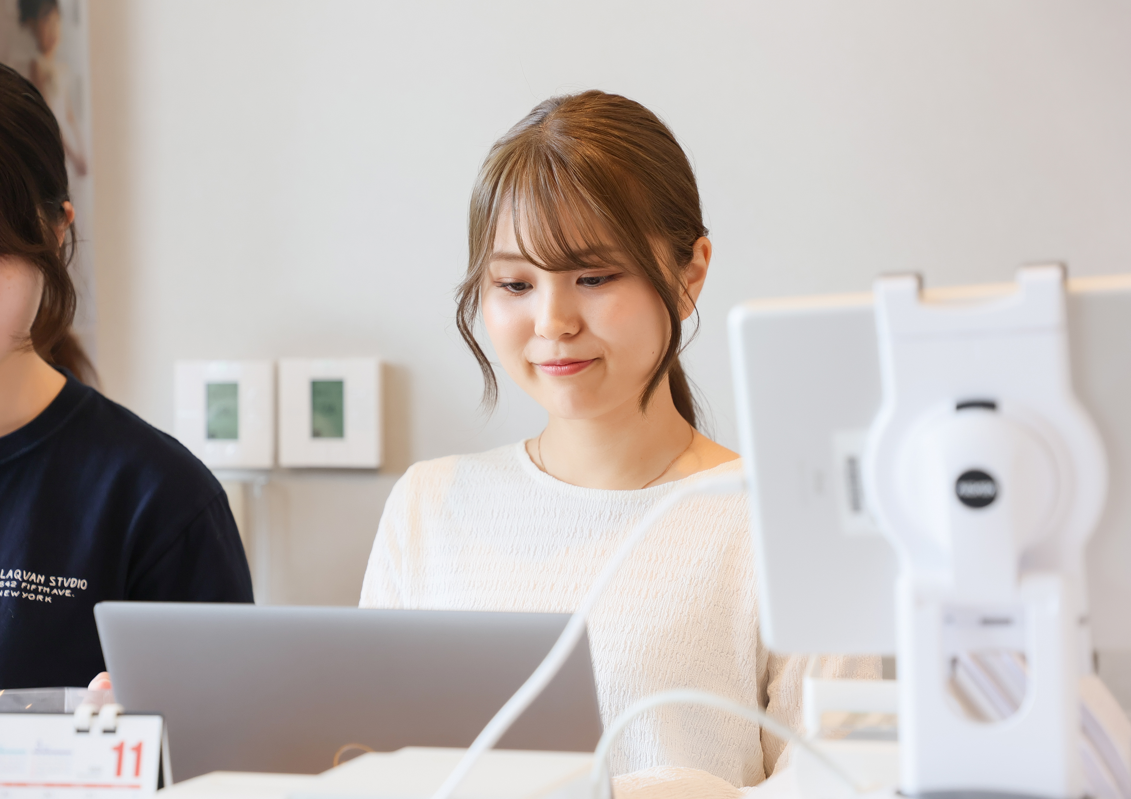 ストアオペレーション部の一員として、各店舗の売上や客単価の管理、それに伴うスタッフ教育、店舗で発生するさまざまなクレーム対応などを担当しています。また、ホームページの予約管理システムも担当しており、他部署と連携しながら、新しいプランの設定や、業務効率を上げるためのシステム改修などにも携わっています。業務は個人で完結するものばかりではなく、チームやペアで分担して進めることが多いため、日頃から密にコミュニケーションを取り、お互いにサポートし合いながら取り組んでいます。